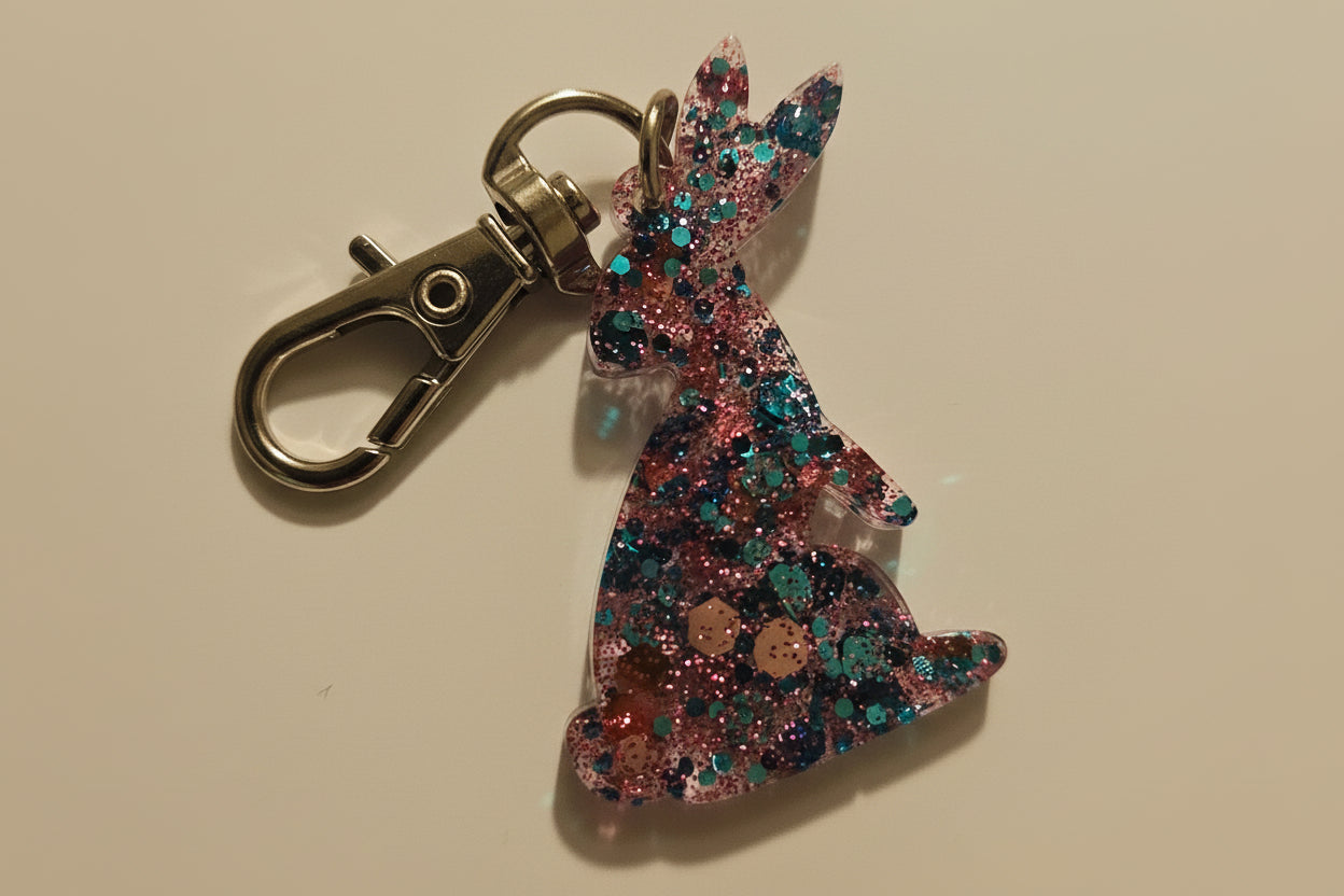 Sweet little charm inspired by classic chocolate bunny treats. Crafted from glossy resin with smooth curves and a playful silhouette, this lightweight piece adds a dash of whimsy to keys, bags, or accessories. Cute, collectible, and perfect for spring gifting.
